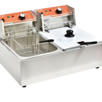 Commercial Deep Fryer With Basket 6-12L Capacity Adjustable Temperature and Trimer Stainless Steel
