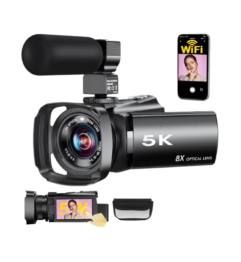 Capture every moment in breathtaking clarity with this advanced 5K Video Camera, engineered for creators who demand exceptional detail and vibrant color accuracy. Featuring ultra-high-definition 5K resolution, it delivers stunningly sharp footage that brings your stories to life with cinematic brilliance. The powerful image sensor ensures superior low-light performance, allowing you to record crisp videos even in challenging lighting conditions. With advanced autofocus technology, your subjects stay perfectly sharp and in focus, whether youβre filming fast action or intimate close-ups. The built-in optical image stabilization reduces blur and shake, providing smooth and professional-looking results every time. A versatile zoom lens lets you frame shots precisely, from wide landscapes to detailed close-ups. The intuitive touchscreen interface makes navigation simple, giving you quick access to settings and creative modes. Equipped with Wi-Fi and HDMI connectivity, it allows seamless sharing and easy integration with other devices. Long-lasting battery life ensures extended shooting sessions without interruption. Designed with a durable yet lightweight body, this 5K Video Camera is the perfect companion for travel, vlogging, filmmaking, and capturing unforgettable memories.
