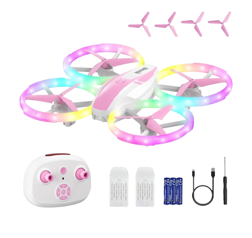 The Mini Drone for Girls and Beginners with Fancy LED Lights is a stylish and fun quadcopter designed to bring excitement and creativity to every flight. ✨ With its vibrant color-changing LED lights, this drone lights up the sky and adds a magical touch to nighttime adventures. It’s lightweight, portable, and easy to control, making it perfect for first-time flyers, kids, and teens who want to explore the joy of flying. The one-key takeoff and landing feature ensures smooth operation, while the headless mode helps beginners maintain easy control. Equipped with 360Β° flips, altitude hold, and stable hover, it delivers both fun and steady performance. The durable propeller guards protect the drone during bumps and crashes, ensuring safety during indoor or outdoor use. With rechargeable batteries and quick charging, you can enjoy longer flying sessions with minimal downtime. Its cute, feminine design and LED sparkle effect make it a perfect gift for girls who love tech and style. Whether used for fun flights, tricks, or light shows, this mini drone combines beauty, simplicity, and performance in one dazzling package. πŸ’–πŸš