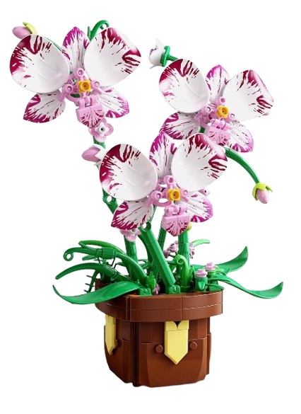 Each component of the Orchid Flower Building Block Set is crafted with high-quality, durable materials to ensure long-lasting stability and a realistic appearance. The pieces fit together seamlessly, allowing users to build without difficulty while maintaining the aesthetic appeal of the final model. The blocks are designed to replicate the natural textures and contours of a real orchid flower, including the petals, stem, leaves, and pot. The vibrant colors are carefully selected to resemble a natural orchid, creating a visually striking display once the set is fully assembled.