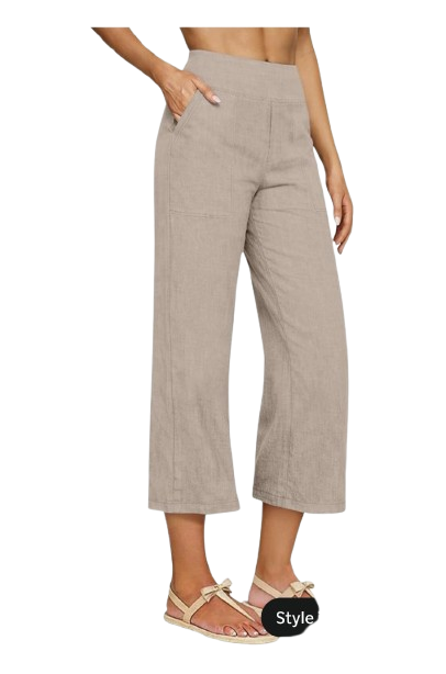 Womenβs Cotton Linen Capri pants are designed for comfort, breathability, and effortless everyday style. Made from a soft blend of cotton and linen, they feel light and airy on the skin, making them perfect for warm weather. The natural fabric allows excellent airflow, helping you stay cool and comfortable throughout the day. These capri pants feature a relaxed fit that offers ease of movement while maintaining a flattering look. Their versatile design pairs easily with casual tops, blouses, or summer shirts. Ideal for daily wear, vacations, or relaxed outings, they bring both comfort and style together. The lightweight texture makes them suitable for long hours of wear without feeling heavy. A simple yet elegant design adds a timeless touch to your wardrobe. Easy to care for and durable, they are made to last through regular use. Womenβs Cotton Linen Capri pants are a perfect choice for a relaxed, breathable, and stylish look.